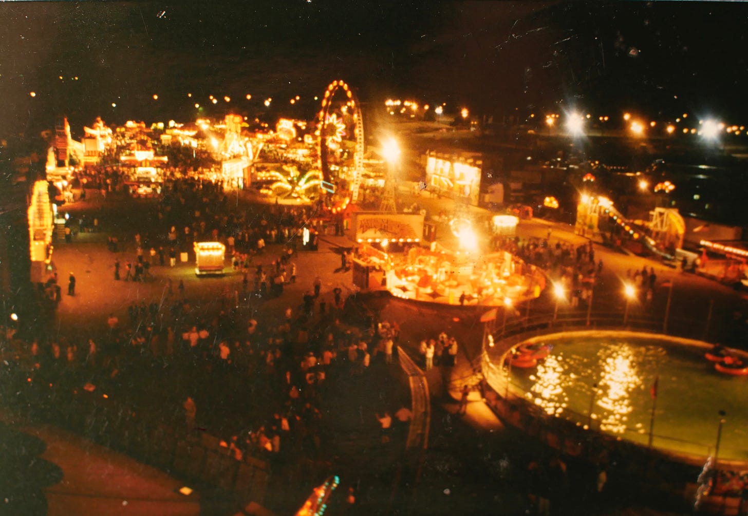 In the evenings, after washed up rock stars like Eddie Money (who hadn’t had a hit since 1988) play the mainstage, the midway takes on a brooding gloom. The daytime crowd of friendly young families and elderly couples give way to the low, sour smell of booze and cheap perfume as a raucous mob of college students, tattooed carneys, and airmen stationed at the base spill out of the grandstand. Lemonade sales slow to a crawl at night, as the sneering fairgoers seek out stronger beverages.